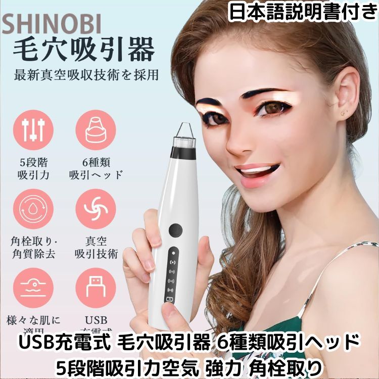 - USB充電式 毛穴吸引器 毛穴ケア 6種類吸引ヘッド 5段階吸引力 毛穴汚れ吸引 角栓取り 毛穴 鼻 角栓 毛穴クリーン 日本語取扱説明書