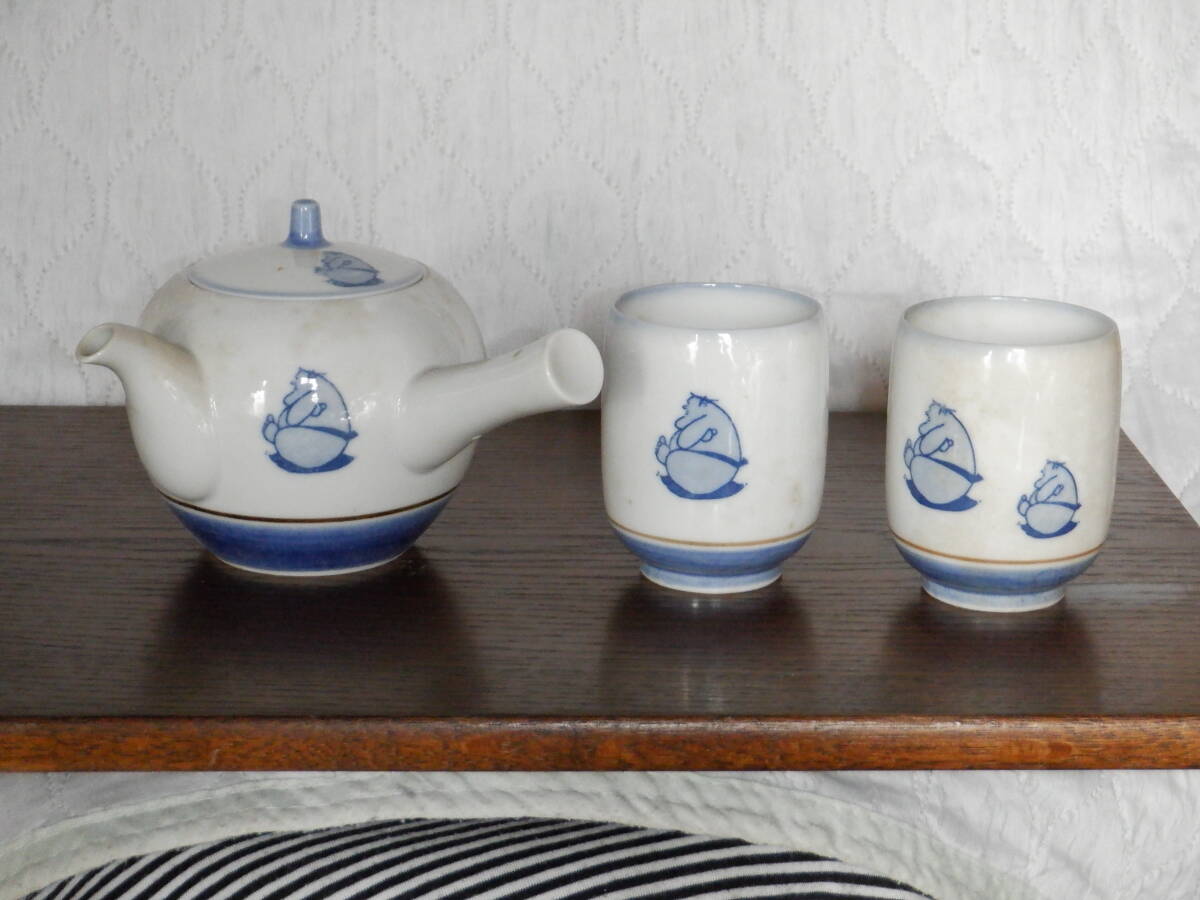 - 茶器セット 茶碗 2個 急須 1個 相撲土産 昭和レトロ 新品 未使用品 元箱入り