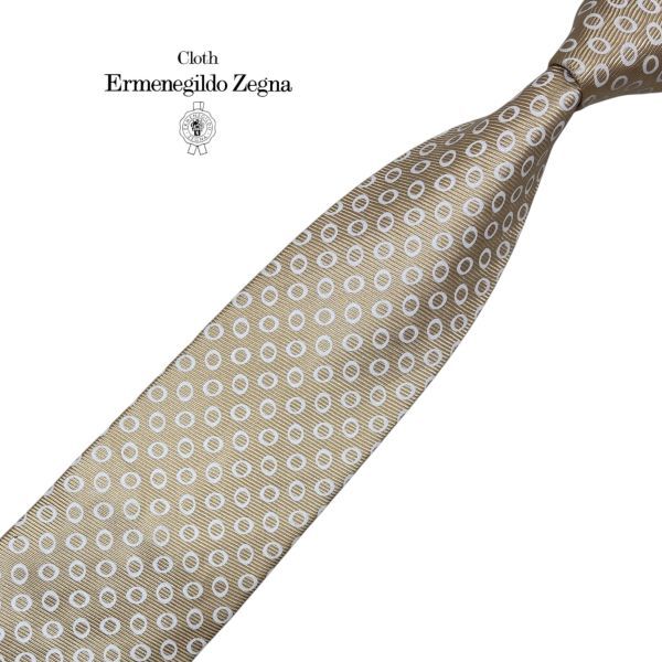 - ★美品★高級ネクタイ★Ermenegildo Zegna★ベージュ系 ○柄 エルメネジルド・ゼニア ネコポス可 USEDプレス済み t1147