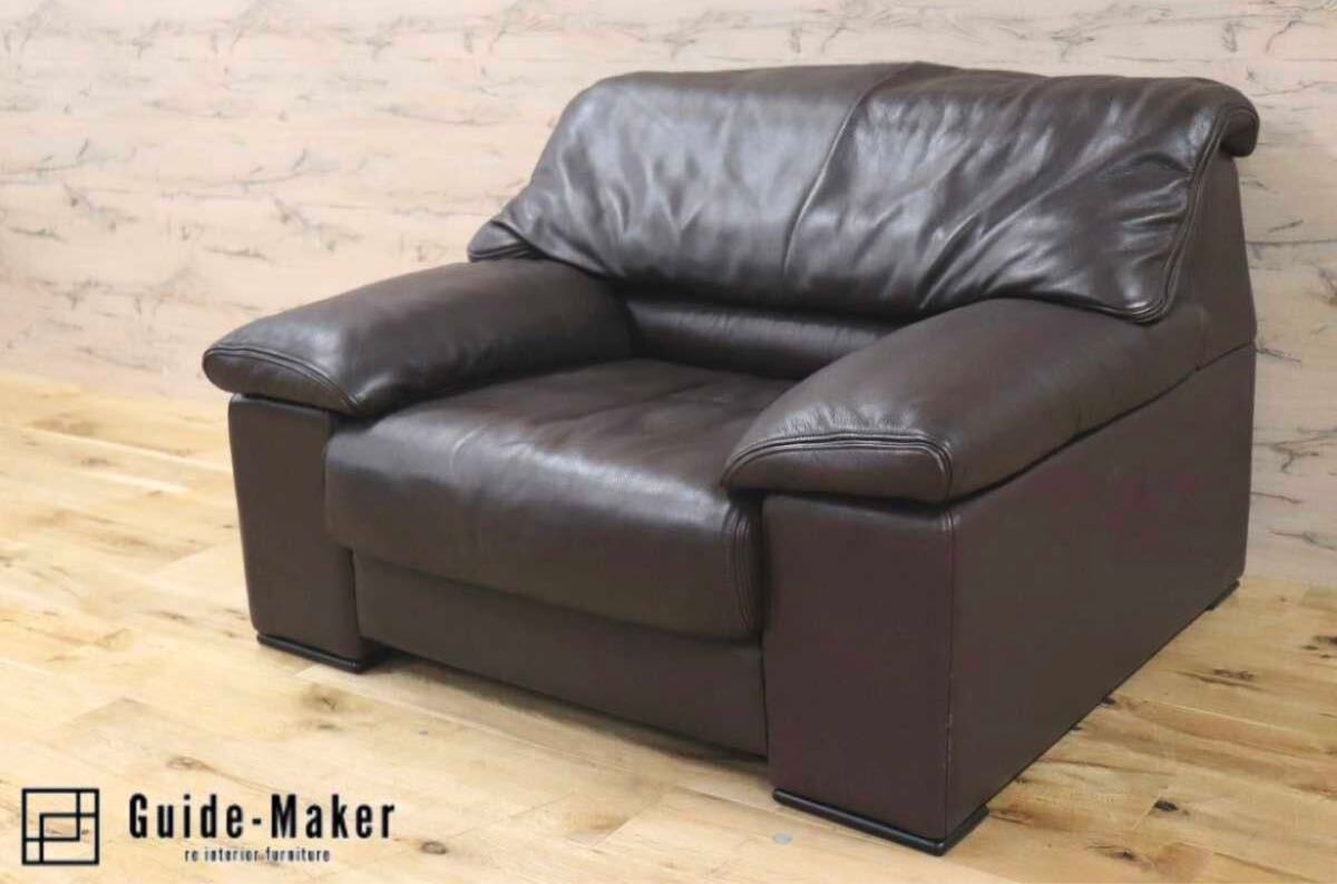 > GMFN10I○karimoku / カリモク 1人掛けソファ シングルソファ 総本革 定価約27万 応接 肘掛け椅子 高級 家具 モダン 廃番