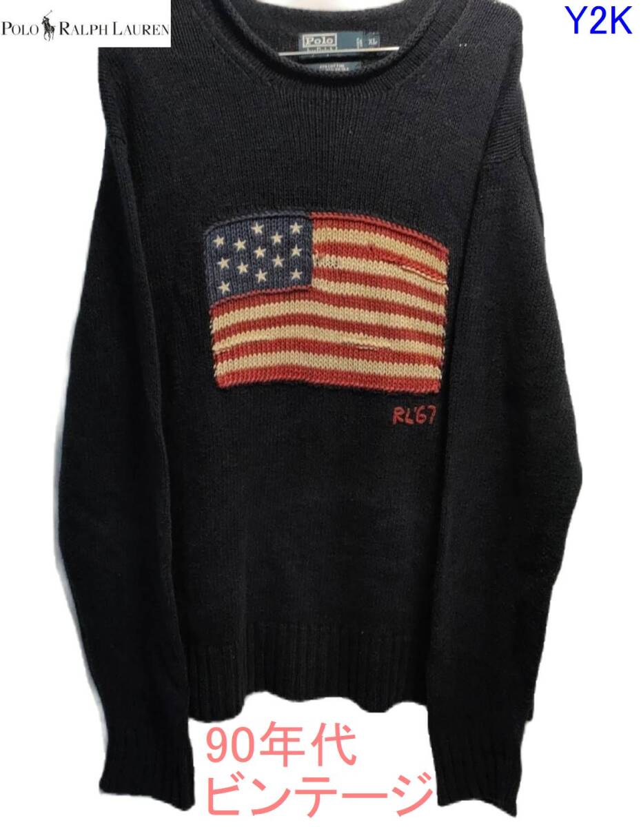 - 90年代ビンテージ RALPH LAUREN ポロラルフローレン 星条旗 リネンニット XL