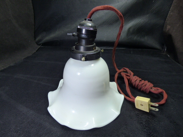 - ほ141.レトロ ペンダントライト ガラスシェード ミルクガラス フリルデザイン 東芝 天井照明 1灯 インテリア【ジャンク品】