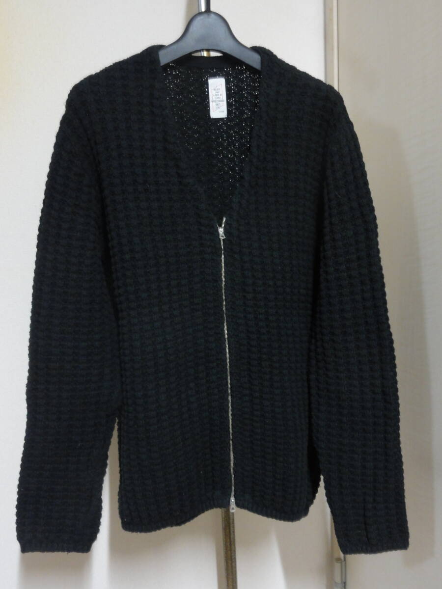 - 格安レア・高級ブランド 神楽坂 LA KAGU(ラカグ・サザビーリーグ取扱い)・黒ワッフル織系?の綿100%地・フロントジップ型カーディガン M