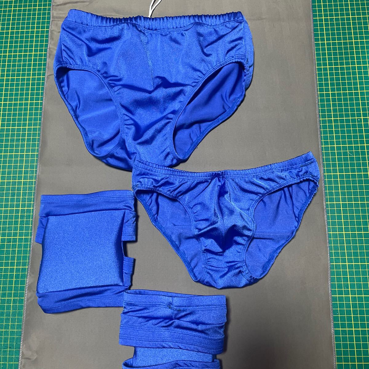 - XLロイヤルブルー3点セット プロレス試合用セット ショートタイツ、アンダーパンツ、ニーパット 水着