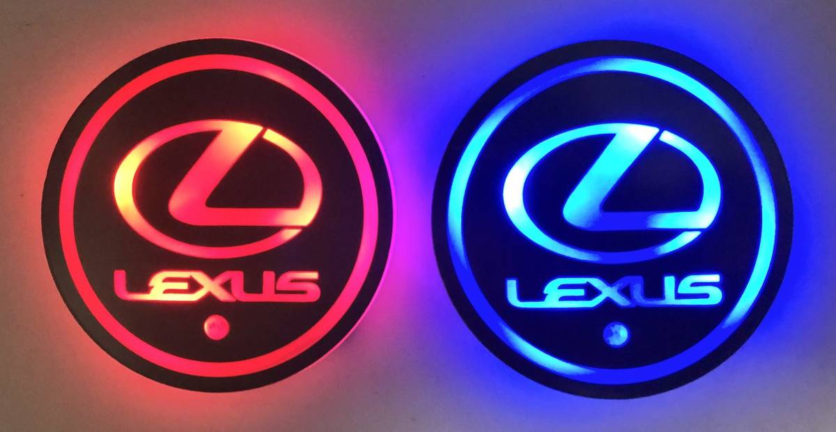 - レクサス車簡単カスタム 光るLEDコースター 2個セット ドリンクホルダー 車内装アクセサリー LEXUS