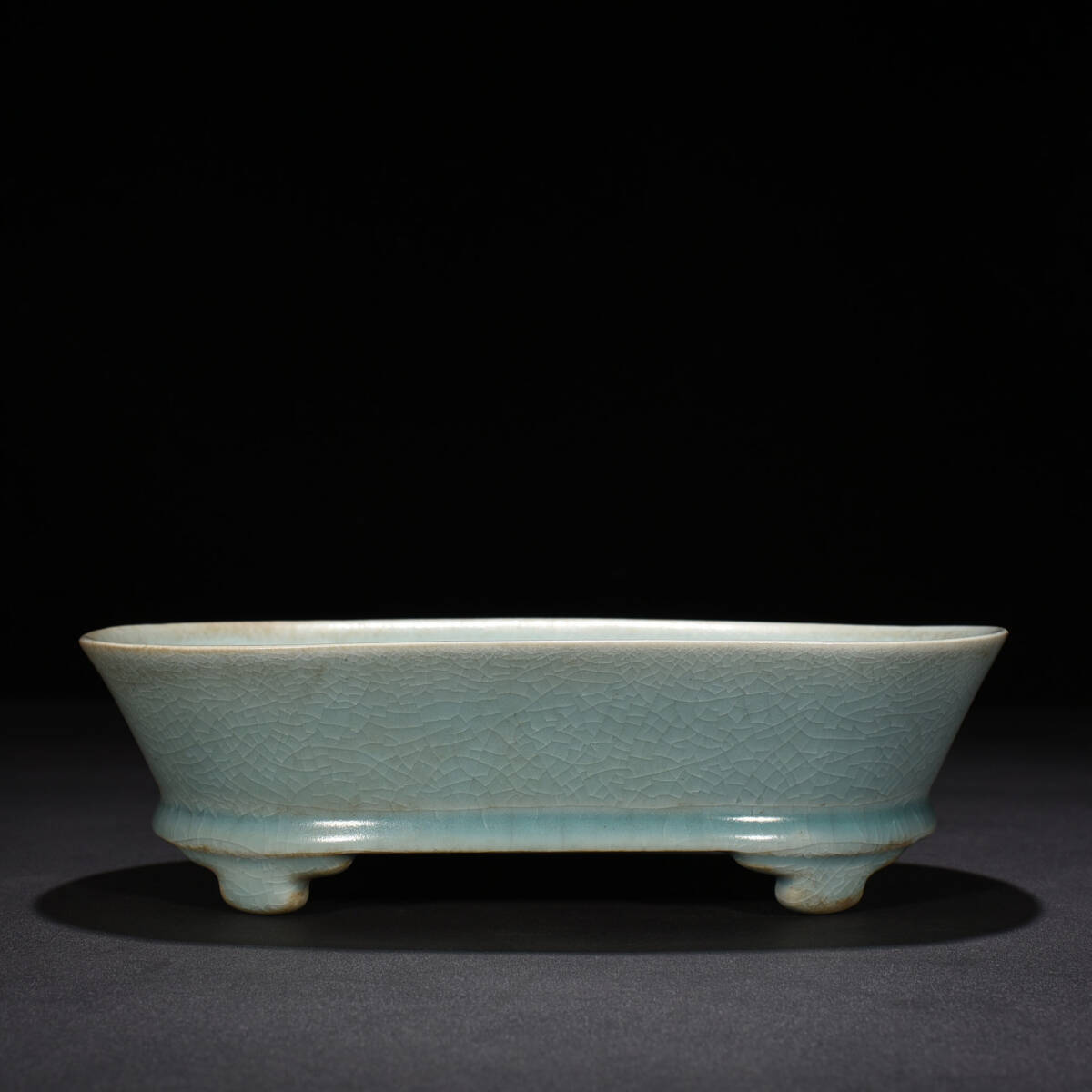 - ◆旧家蔵出◆古美術 中国古玩 宋時代 汝窯 天青釉 銘文水仙盆 古賞物 擺件 骨董 時代物 A33