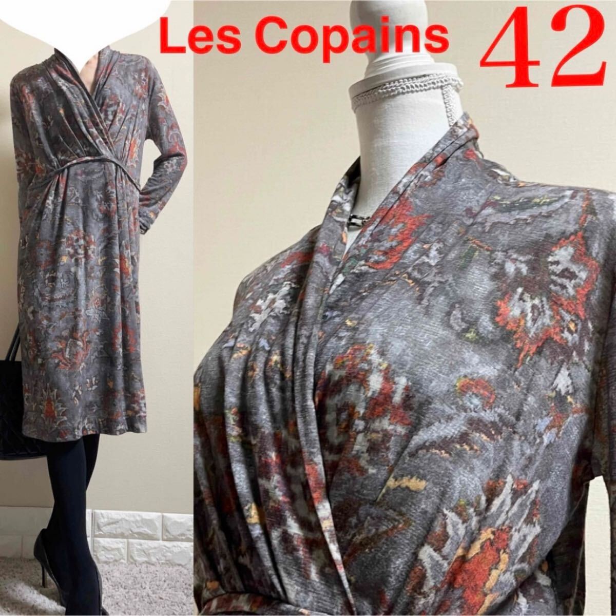 > お値下げ!美品!les copains レコパン 高級 フラワーワンピース 42 L〜XL 大きいサイズ ラグジュアリー ドレス