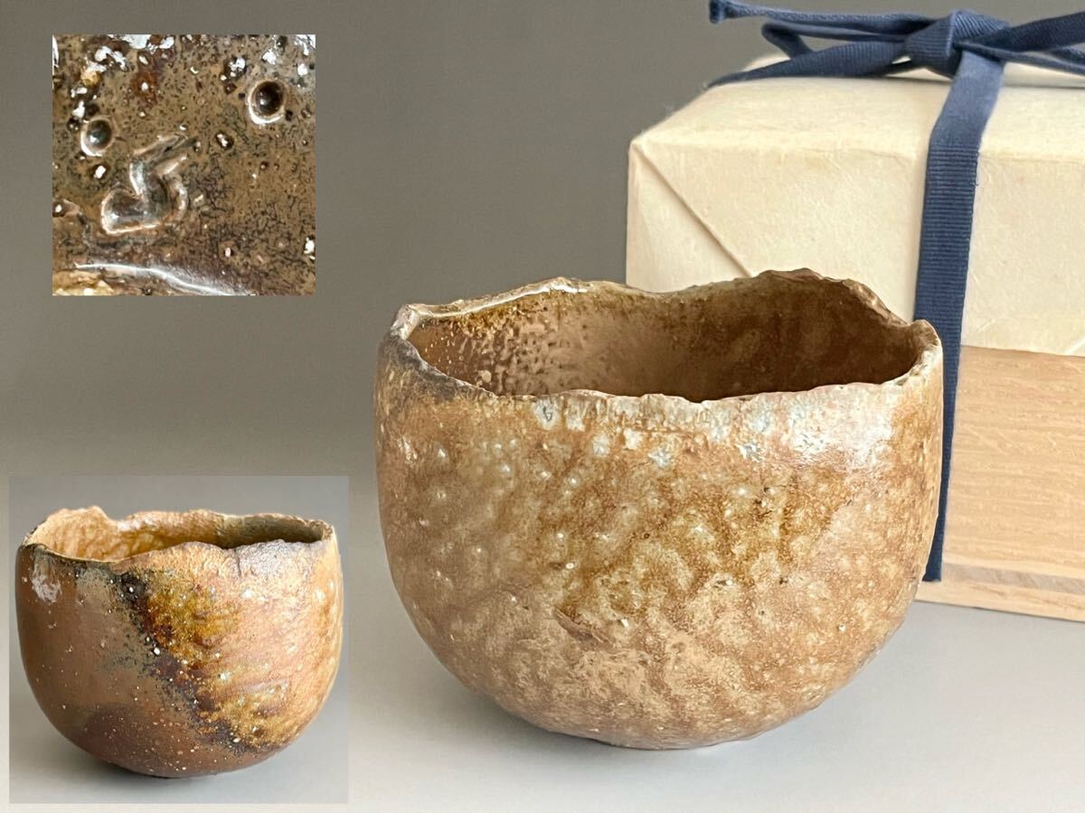 - 伊勢崎晃一朗 (父 人間国宝 伊勢崎淳) 備前 窯変 茶碗 茶道具