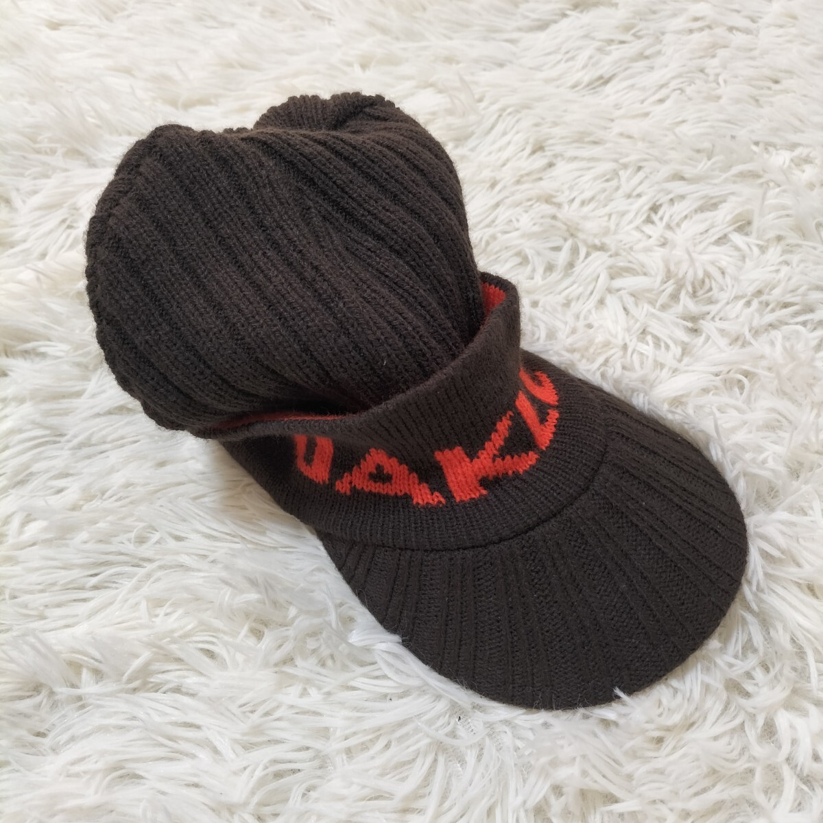 - 美品☆OAKLEY ツバ付きニット帽 ニットキャップ ブランドロゴ オレンジ ブラック サイズフリー アーカイブ オークリー 帽子 古着 USED