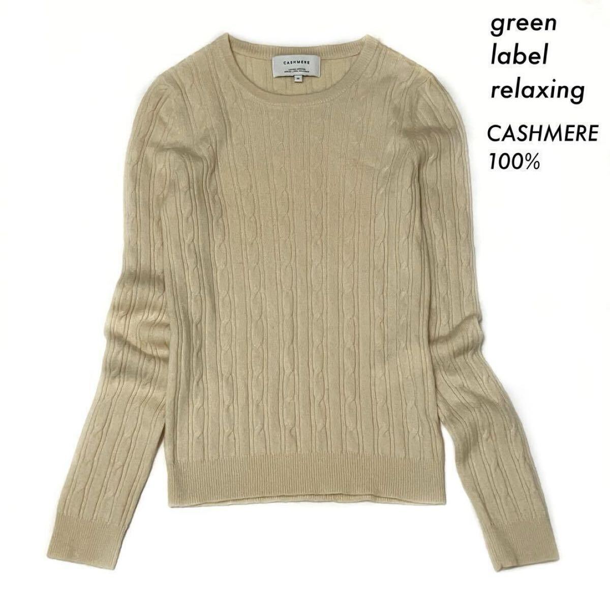 - 【送料無料】green label relaxing★カシミヤ100% 長袖ニット ケーブル編み アイボリー
