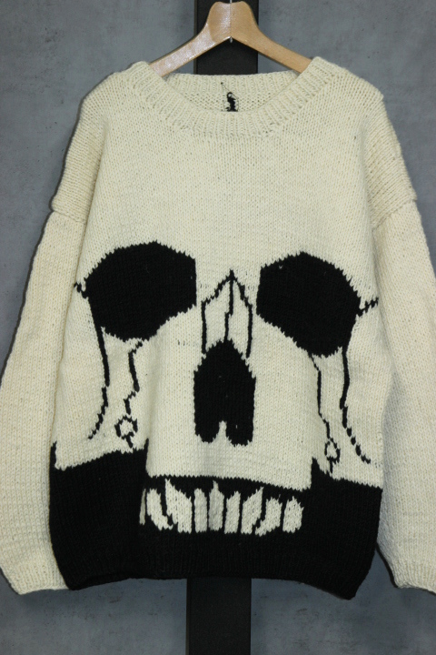 - 未使用 MacMahon Knitting Mills (マクマホンニッティングミルズ) Big Skull CREW NECK KNIT / オフホワイト / ウールニット