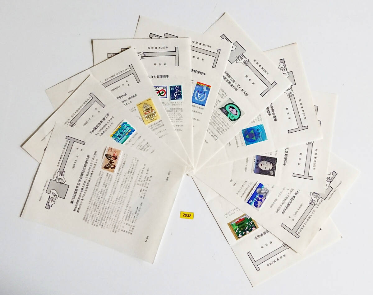 - みほん切手/記念切手/解説書/10枚/昭和55年~昭和57年/郵政省/全日本郵便切手普及協会/見本切手/みほん字/見本字入り/詳細説明文参照/№2032