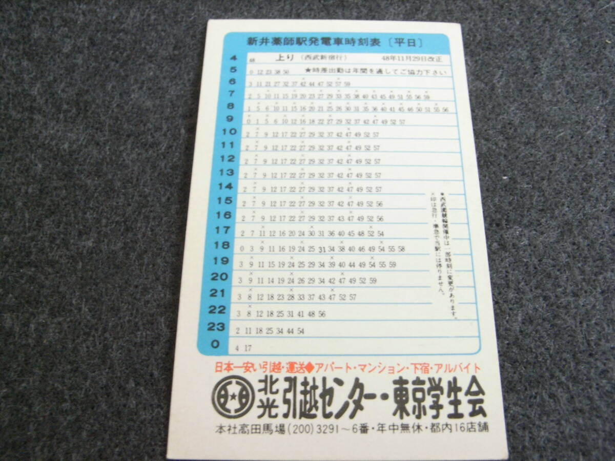 - 西武新宿線 新井薬師駅発電車時刻表 昭和48年11月29日改正 西武鉄道時刻表