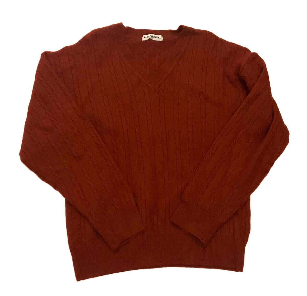 - Lancel ランセル 日本製 毛100% 長袖 Vネック セーター 90s 沈んだ赤色 Lサイズ