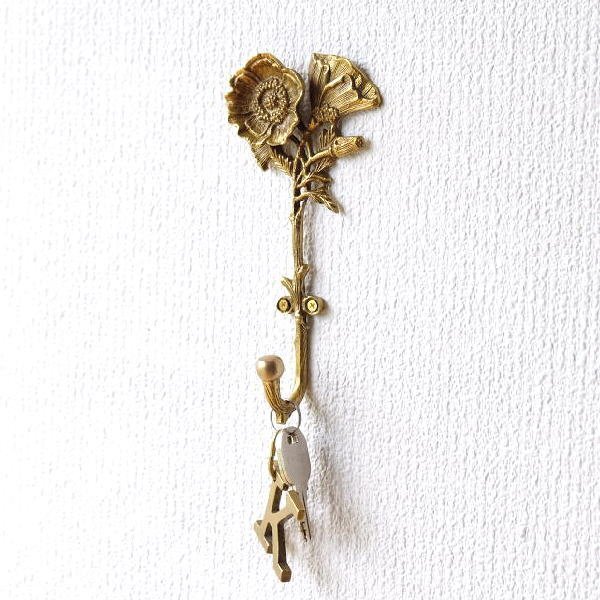 - フック 壁 壁掛け おしゃれ ウォールフック かわいい ブラス 真鍮 アンティーク風 真鍮のフラワーフック 送料無料(一部地域除く) kan2134