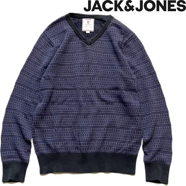 - 1点物◆ジャック&ジョーンズVネック黒紫ニットセーター古着メンズMLレディースOKアメカジ90sストリート/スポーツ/カウチンUSブランド373911