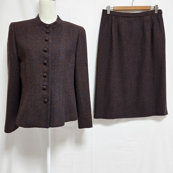 > #wnc レリアン Leilian スカートスーツ 13+ 茶系 紺系 スタンドカラー タイトスカート ツーピース 大きいサイズ レディース [922431]