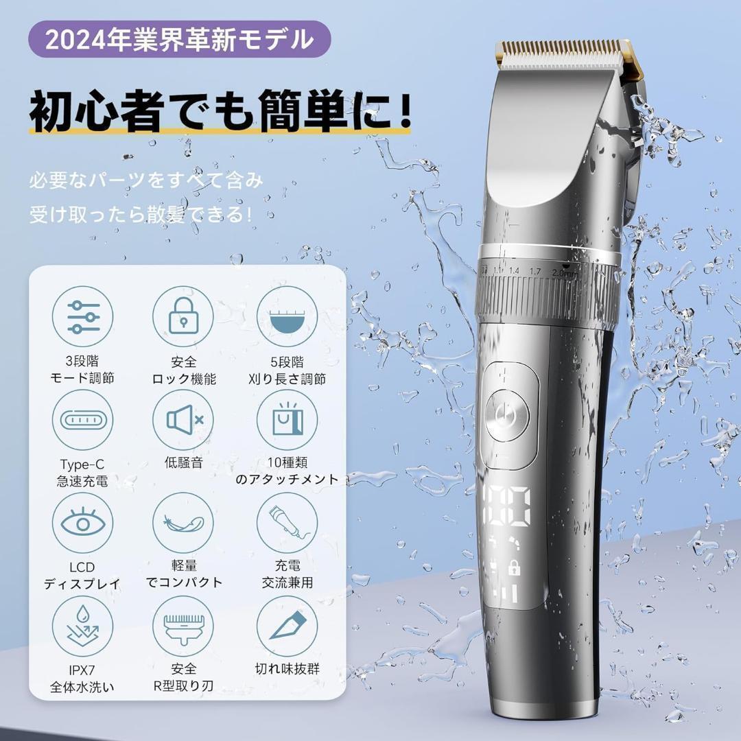 - 1点限り バリカン メンズ Type-C充電式 ヘアカッター 電動 超低騒音 バリカン