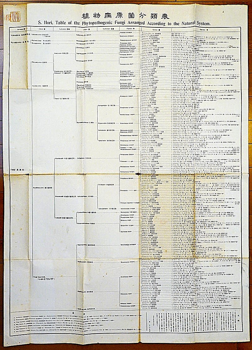- 植物病原菌分類表 1枚 堀正太著 成美堂書店発行 大正7年 検:農作物病害対策 粘菌真菌 蔬菜 葉物 根菜 果樹 穀類 米 麦 樹木 豆類 柑橘