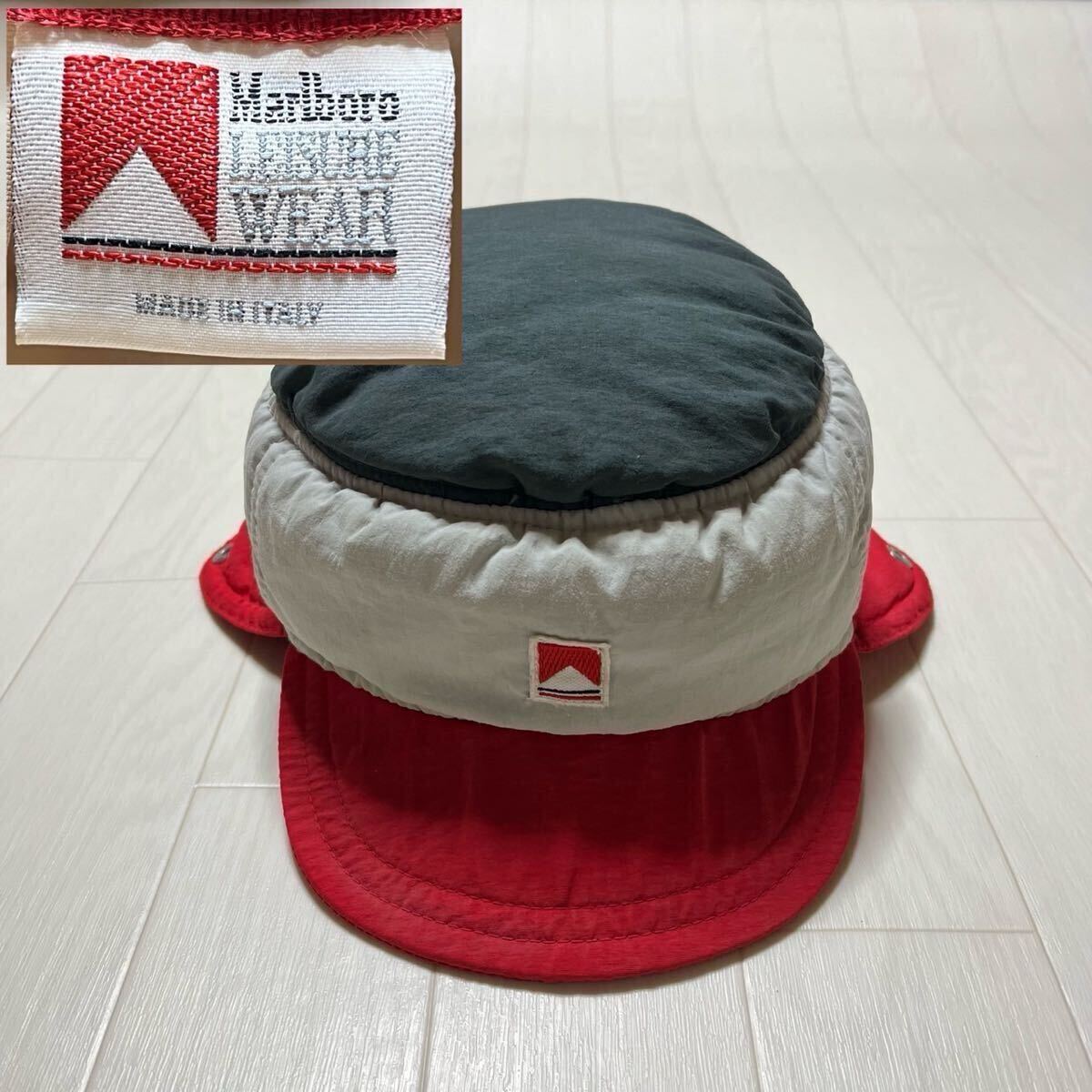 - 希少 激レア イタリア製 Marlboro LEISURE WEAR マールボロ マルボロ 帽子 キャップ ハット 耳当て付き ヴィンテージ ビンテージ ンテージ