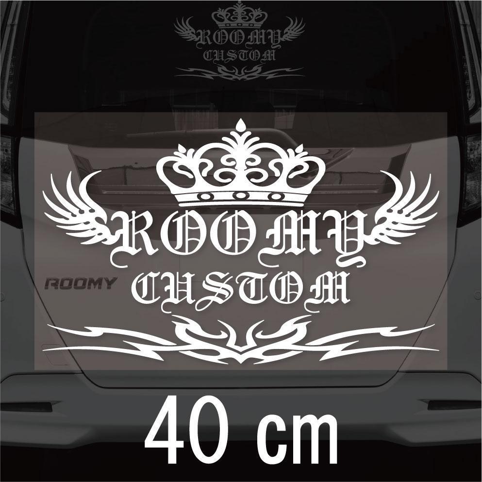 - 40㎝ ルーミーカスタム 王冠 羽 トライバル カッティングステッカー 転写シール 白色