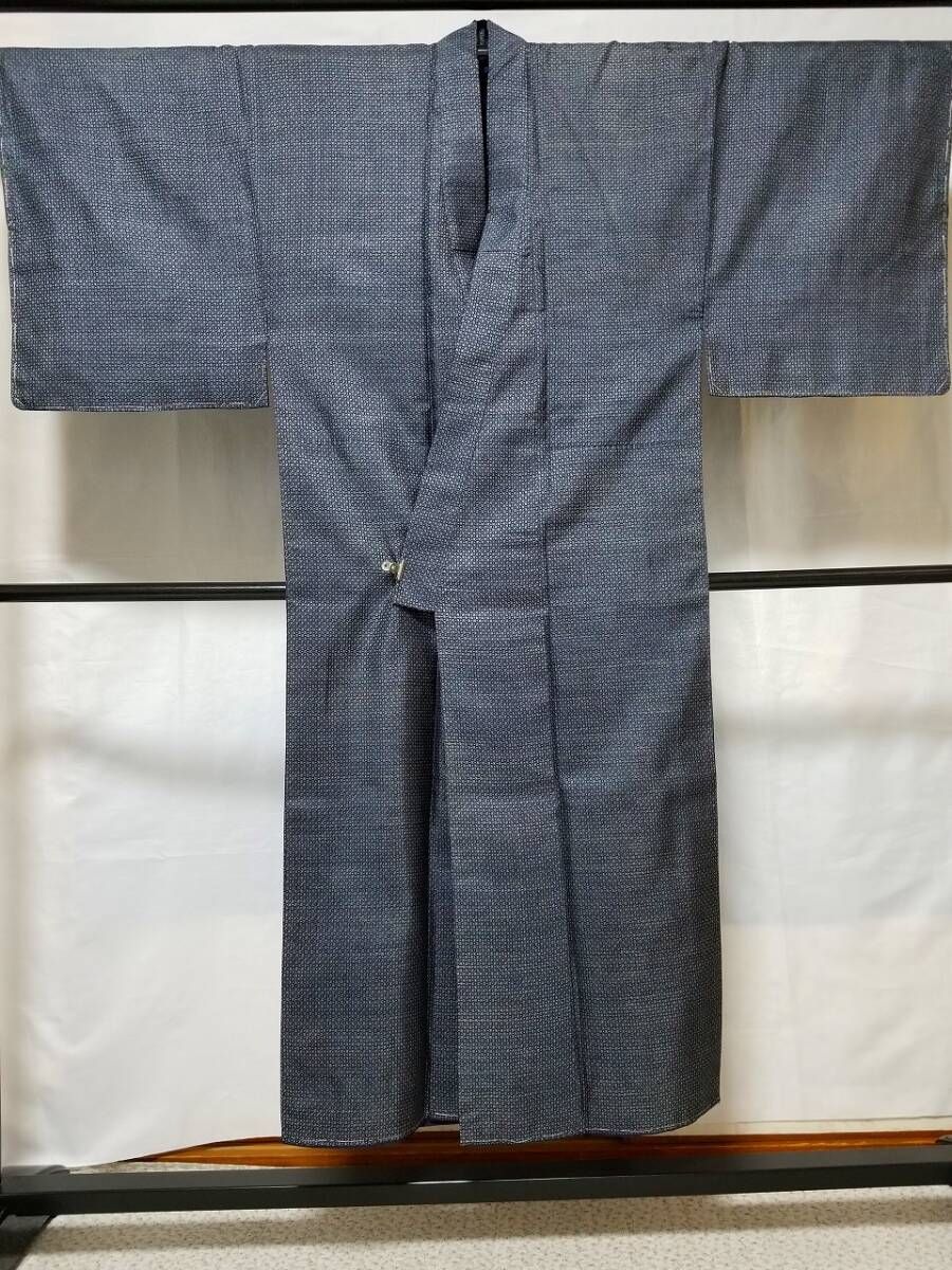 - 【桐徳】紳士物*駒御召AS☆送料無料*期間限定*22%OFF{正絹*西陣*駒御召*袷上.下}丈147-裄69*黒紺地*白糸の経緯絣織の蚊絣.四角文*№6937