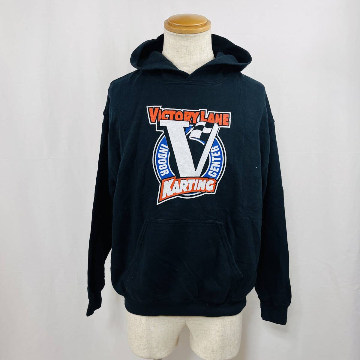 - 【2887】GILDAN ギルダン M 黒 ブラック 長袖スウェットパーカー フーディー ビッグプリント ビッグシルエット オーバーサイズ