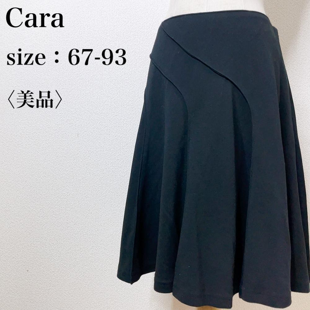 > 【美品】Cara カーラ カジュアル ひざ丈 ミディ ストレッチ フレアスカート フェミニン ふんわり Aライン シンプル 黒 ブラック ろ38