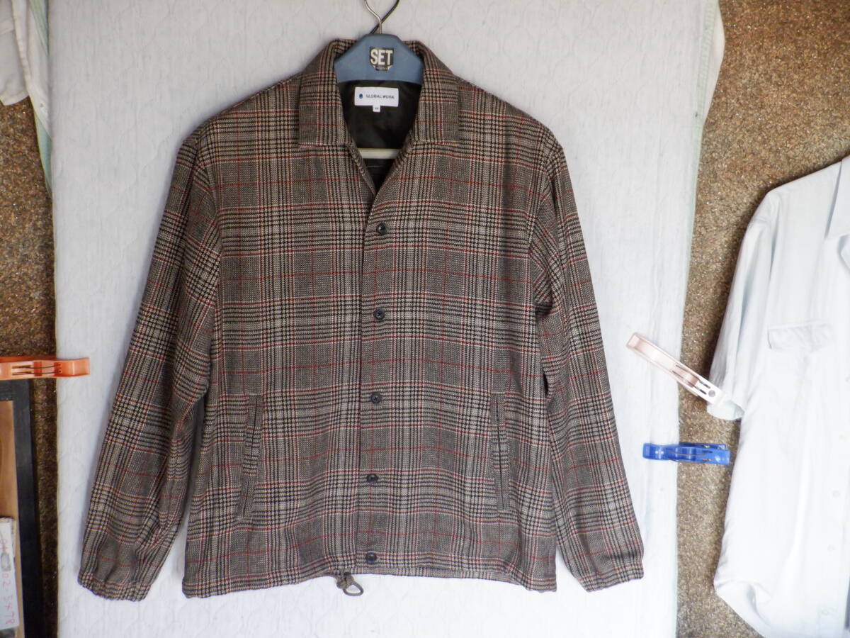 - GLOBAL WORK 秋冬物 ジャケット ツゥィード グレー系チェック柄 M-Lサイズ