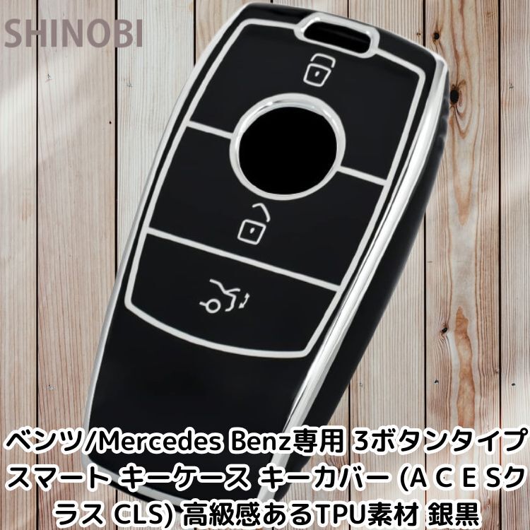 - ベンツ/Mercedes Benz専用 3ボタンタイプ スマート キーケース キーカバー (A C E Sクラス CLS) 高級感あるTPU素材 銀黒