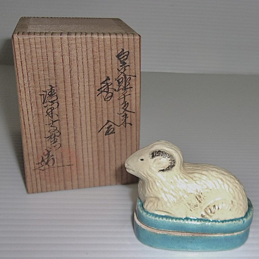 - 羊 香合 杉田祥平 干支 共箱 茶道具 奥52 x 幅32 x 高さ43mm シミあり