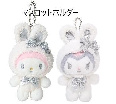 - 【サンリオ】メロクロ ふわふわスノーラビット マスコットチャーム マスコットホルダー ぬいぐるみ マイメロ クロミ 1Z0044R612