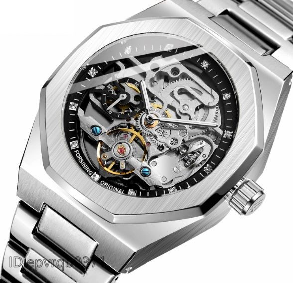 - 男性腕時計 新品 機械式自動巻 メンズ ウォッチ トゥールビヨンデザイン スケルトン 夜光表示 紳士用 通勤 /シルバー