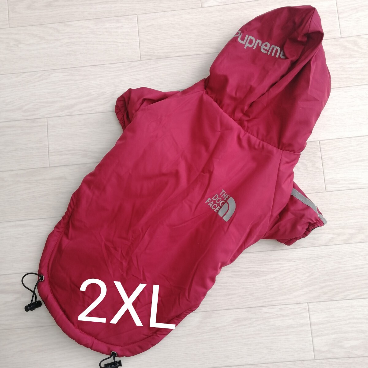 - 新品 犬服 RED 2XL わんちゃんのパーカー ドッグフェイスウインドブレーカー裏地はフリースでやわらかい着心地