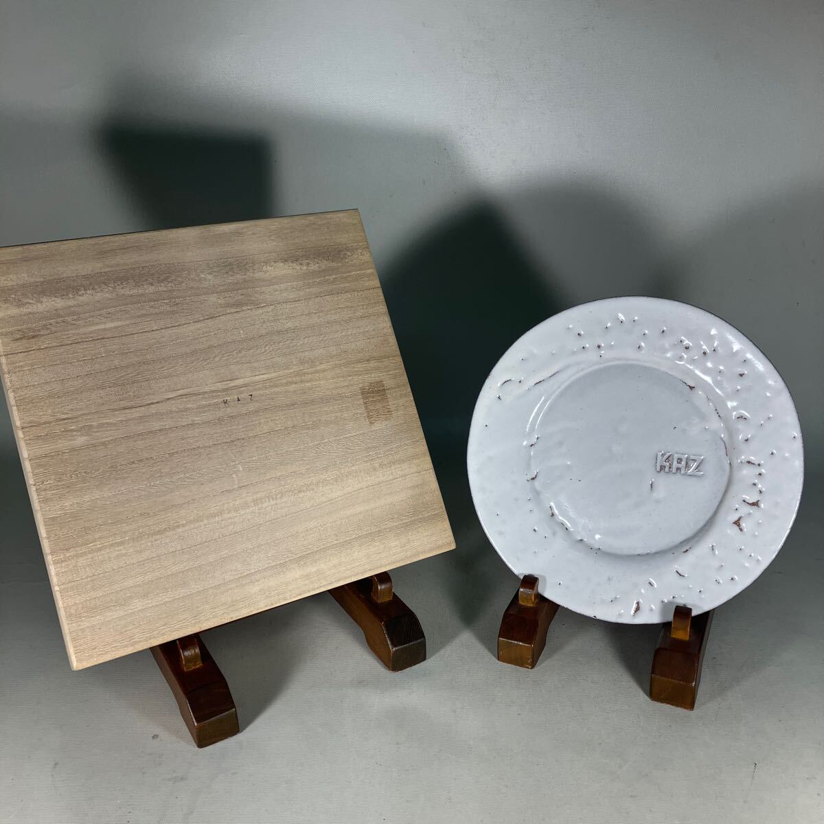 - 三輪和彦造(十三代三輪休雪)萩焼 皿 20.5cm 共箱 共布