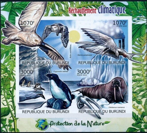 - ブルンジ切手『地球温暖化/自然保護/野生生物』4枚シート 無目打 2012