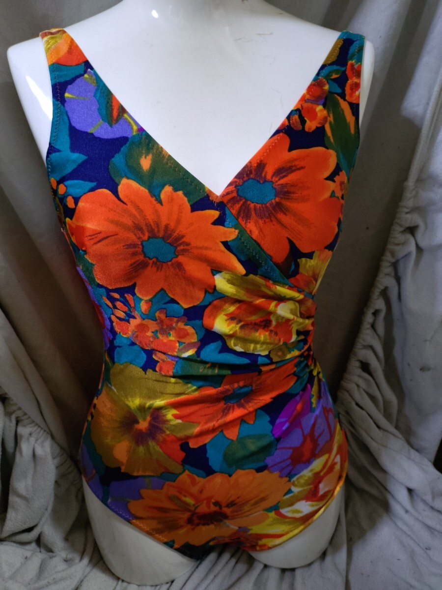 - M3534◆ungalo paris◆セレブなオレンジ系花柄ワンピース水着◆9М