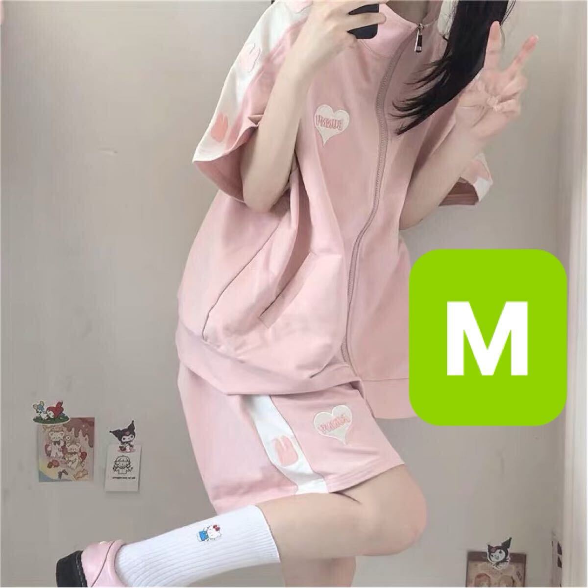 - セットアップ Tシャツ ショートパンツ ゆめかわ うさぎ柄 ポイント 半袖 2枚セット 部屋着 パジャマ 人気 推し ルームウェア ピンク M