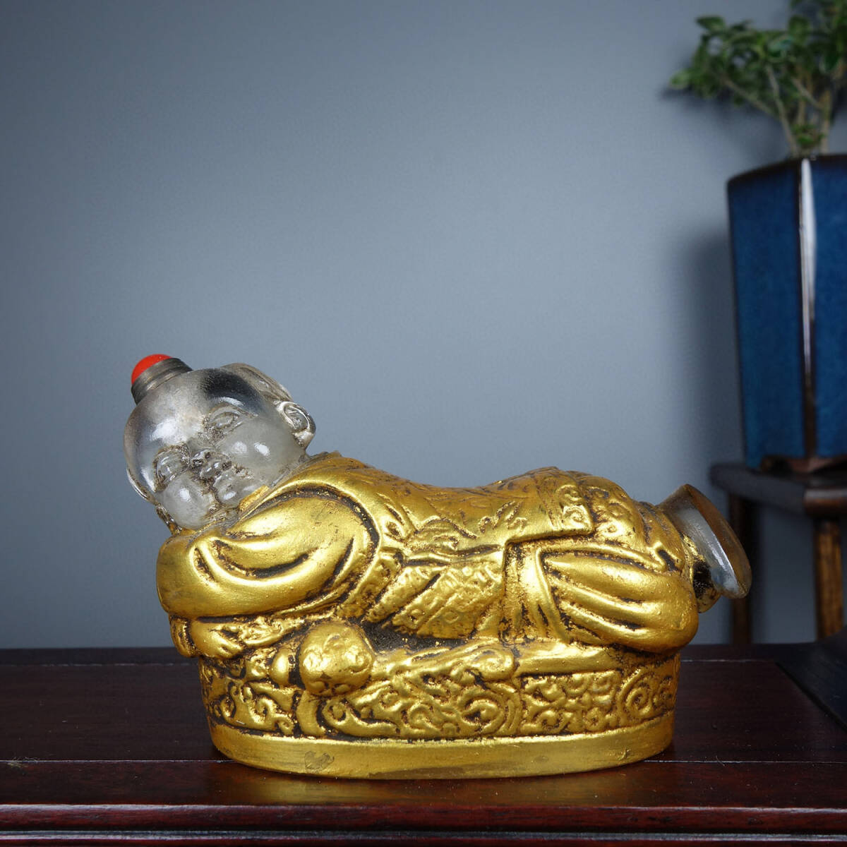 - 『館蔵珍品 琉璃製 細密彫 塗金 童子鼻煙壺』置物 賞物 貴重物品 収蔵品 中国古美術