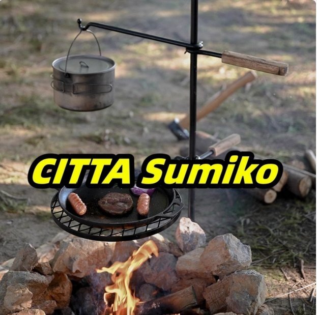 - ファイアスタンド ファイヤーラック 焼き網付き 焚き火台 鋳鉄製 打ち込み式 全長122cm 組み立て簡単 アウトドア用 多機能