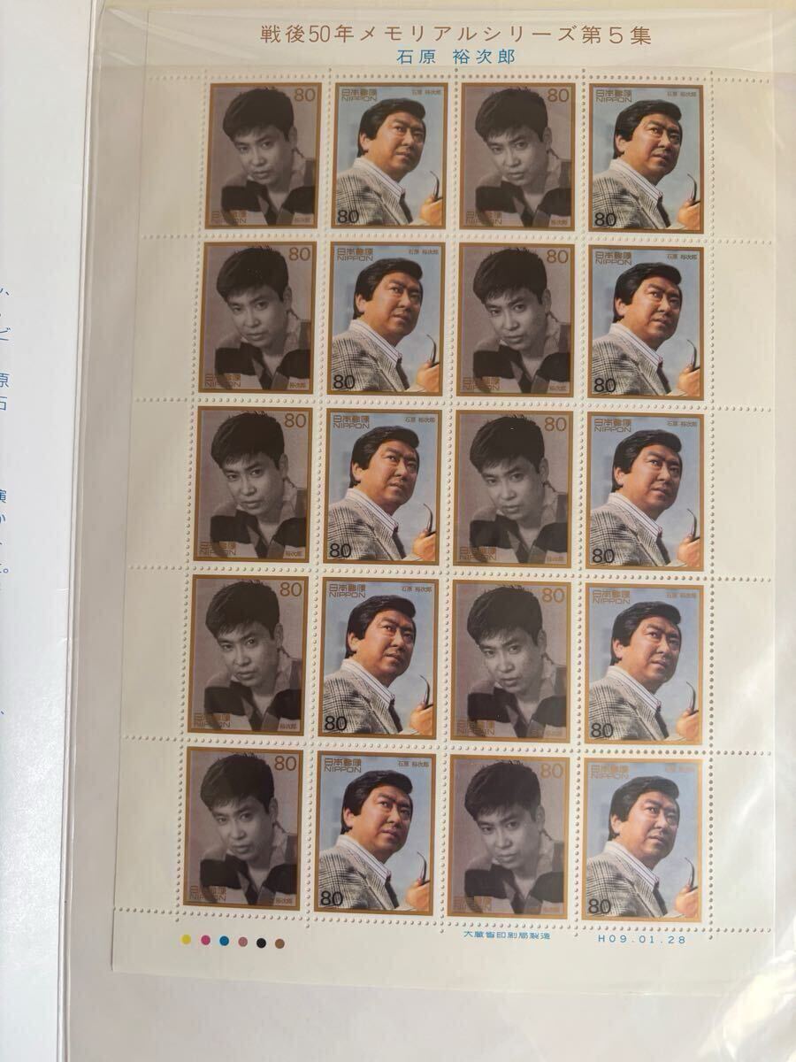 - 石原裕次郎 戦後50年メモリアルシリーズ第5集 記念切手 80円切手20枚セット 平成9年 台紙付き