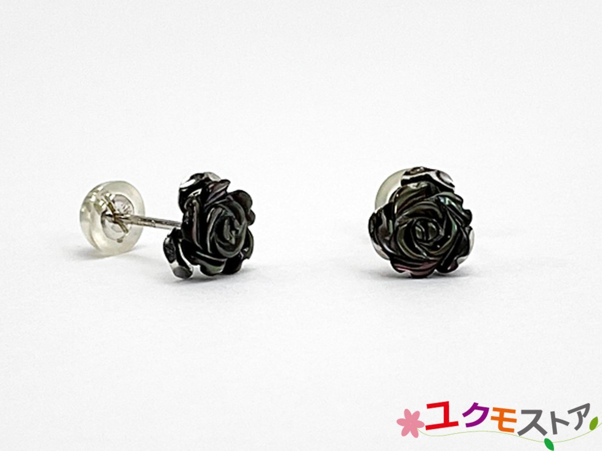 > 【送料無料】薔薇モチーフ ローズ K14WG ピアス ホワイトゴールド K14 585 黒薔薇 ブラックローズ