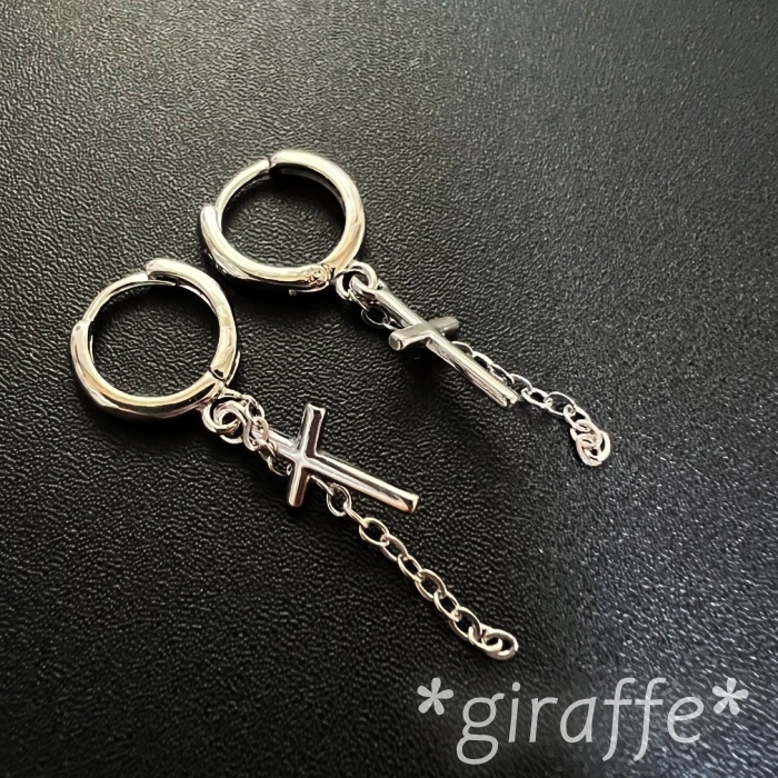- B300 匿名配送 リングピアス レディース 十字架 クロス ピアス s925 シルバー チェーン フープピアス