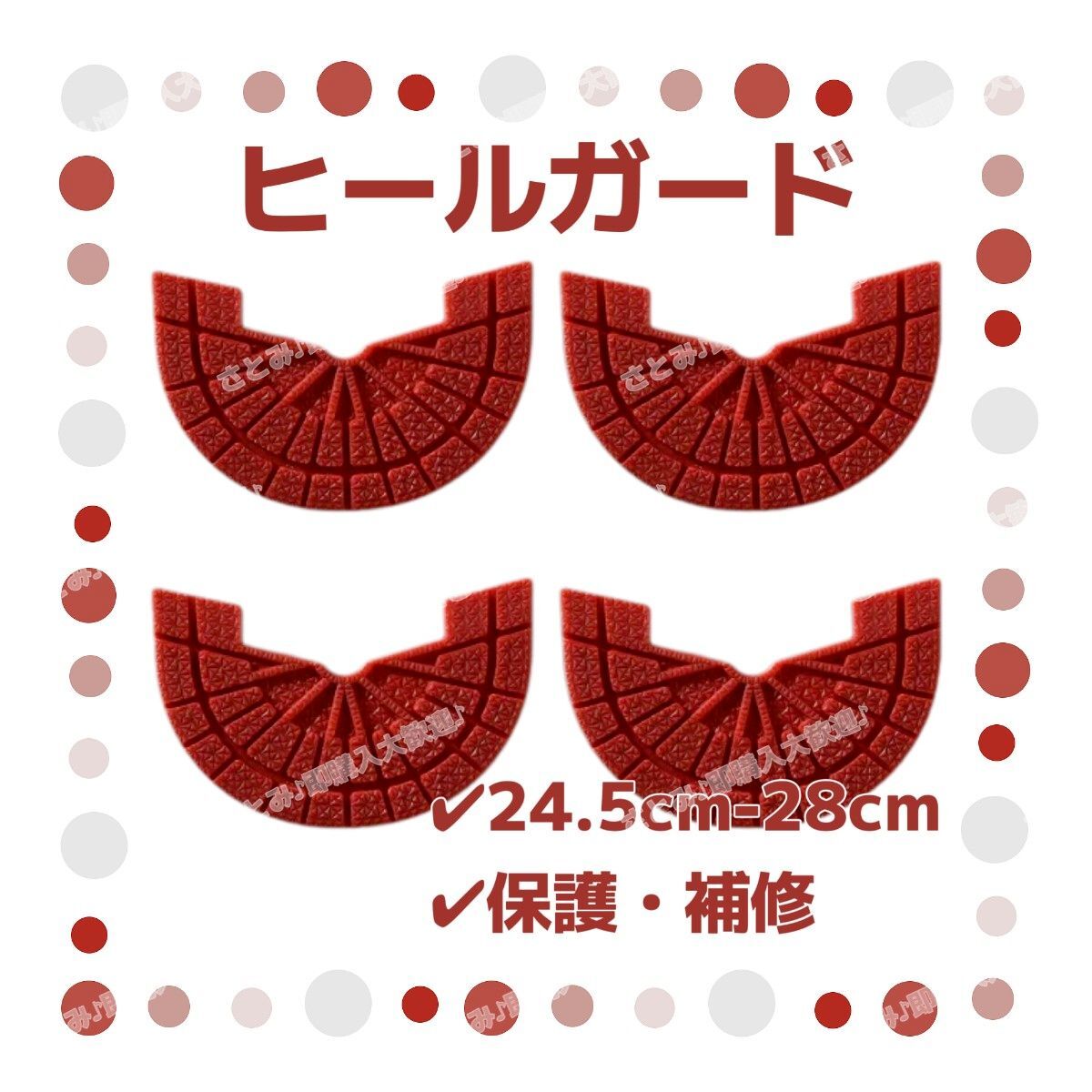 - ヒールガード 4枚セット 2足分 ソールガード スニーカー プロテクター 保護 補修 24.5cm-28cm レッド