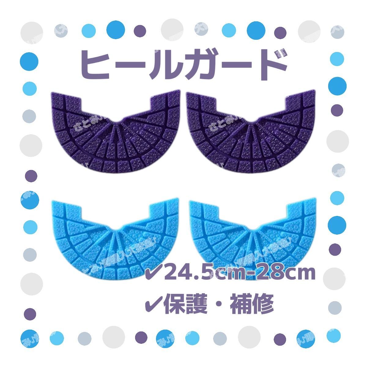 - ヒールガード 4枚セット 2足分 ソールガード スニーカー プロテクター 保護 補修 24.5cm-28cm パープル 水色