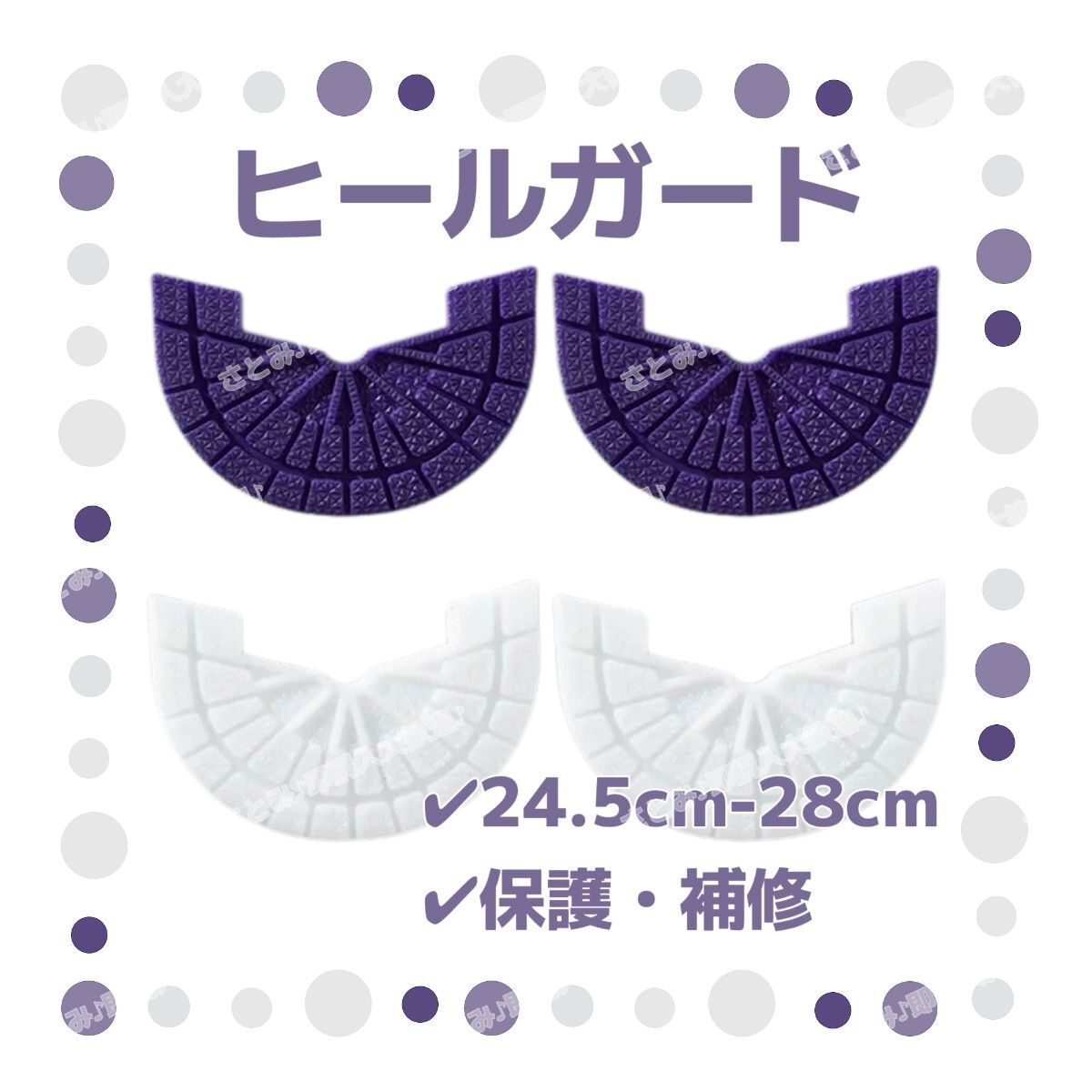 - ヒールガード 4枚セット 2足分 ソールガード スニーカー プロテクター 保護 補修 24.5cm-28cm パープル ホワイト