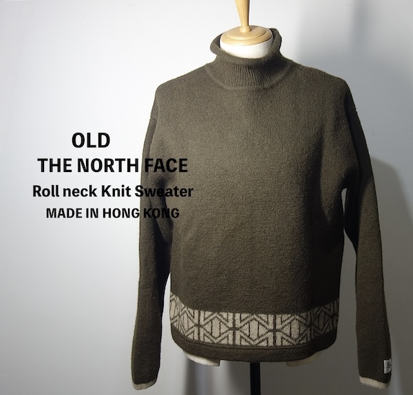 - TK 90s-00s 三角タグ 香港製 ノースフェイス ハイネックセーター 緑 オリーブ ウール100