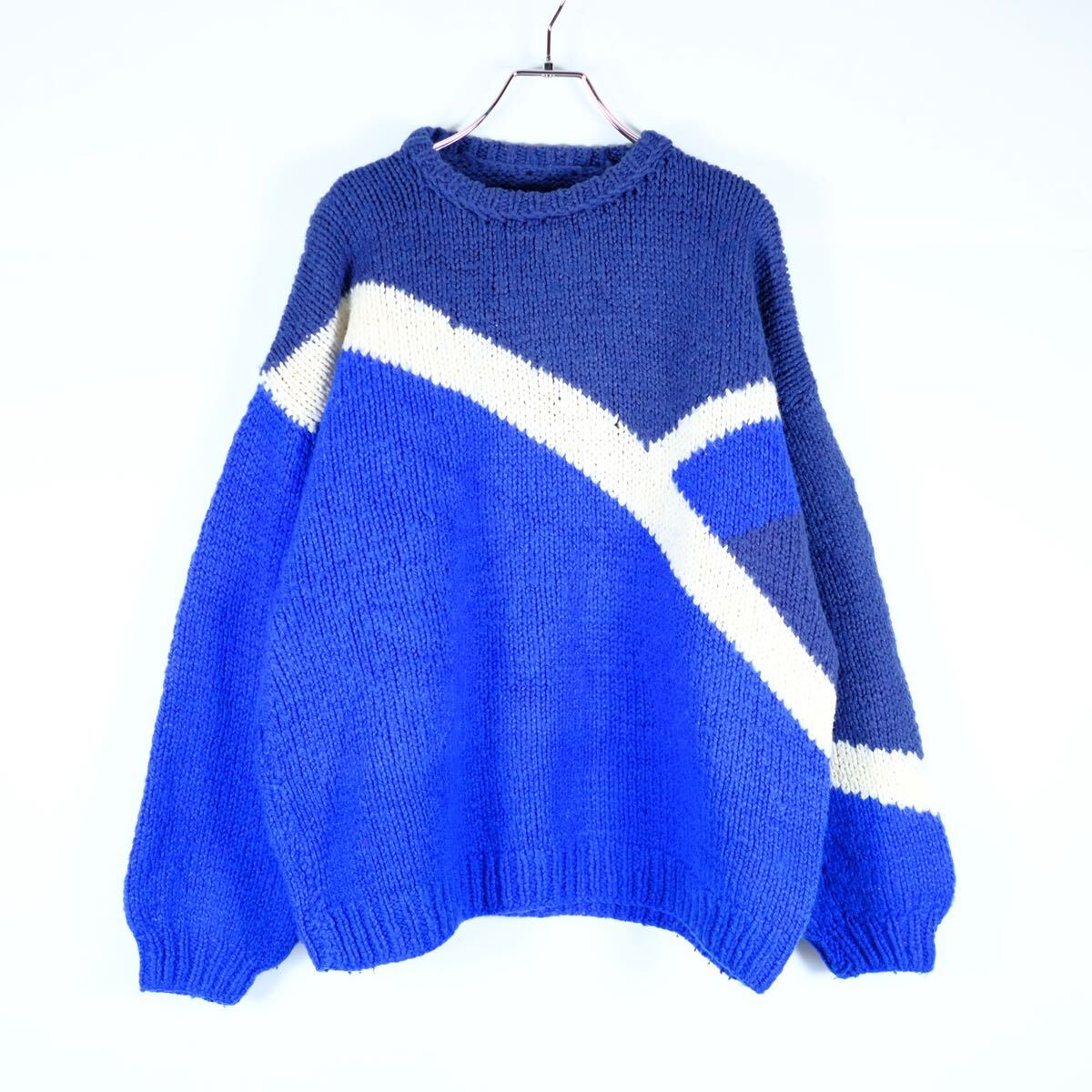 > 1970s ビンテージ デザインハンドニットセーター オーバーサイズ 古着屋 ユーロヴィンテージ アート デザイン 長袖 XL ウール