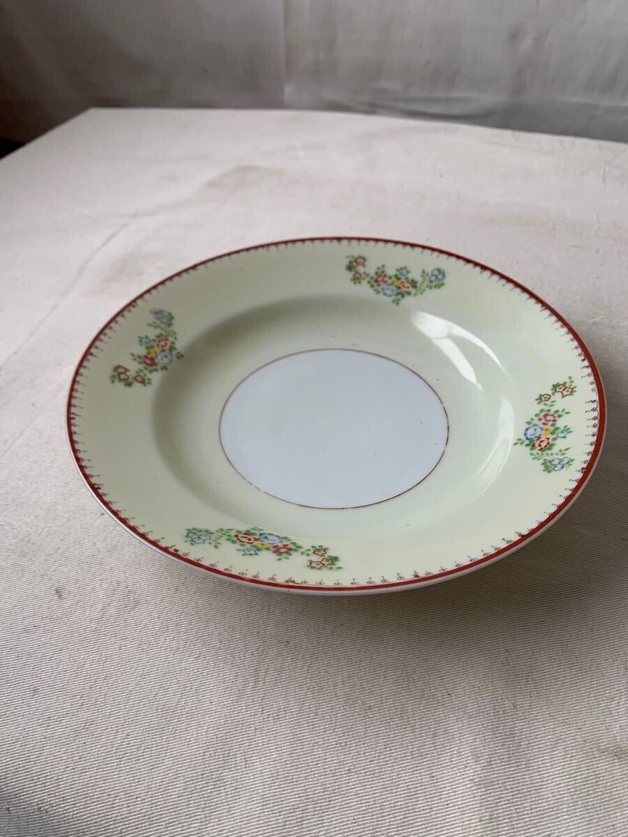 - 旧家蔵出し 美品 デザインが素敵な陶器丸皿 ブロカントアンティークビンテージ昭和レトロ古道具インテリアディスプレイ料理プレートカフェ