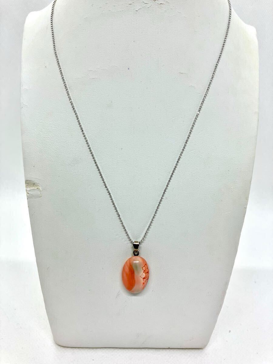 > 【新品】ピンクサンゴネックレス*三月の誕生石*コーラル*一点もの*カービング*珊瑚 *シンプル *桃色珊瑚*花デザイン*silver925